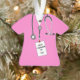 Um presente de novidade para a graduação em medicina criativa para um médico com esfregões de hospital cor-de-rosa e etiqueta de identificação. Para personalizar o texto de edição para adicionar nome e ano de graduação.