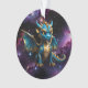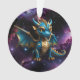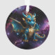 Ornamento de árvores de Natal apresentando um doce dragão azul estilo Chibi contra a vastidão do espaço