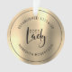 Elegante Chefe Metálico Dourado Senhora Estabelecida Ornamento de Guarda-Data... Um presente precioso para uma dama empresária chefe em (faux) papel metálico em ouro com o nome do dono do negócio e data em que o negócio começou. Um presente de gatilho para Natal ou aniversário para uma mulher empresária. Todo o texto (além do logotipo BossLady) pode ser facilmente revisado no modelo de personalização.