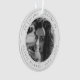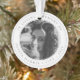 Elegante, enfeite fúnebre da árvore de natal para celebrar a memória de seu ente querido em um estilo moderno de design minimalista em um simples fundo branco limpo. O design pode ser facilmente personalizado com sua própria foto e texto para criar um tributo especial para o funeral, memorial ou celebração da vida do seu ente querido. A imagem mostrada é apenas para fins de ilustração para ser substituída pela sua própria foto. A imagem marcadora é de uma bela mulher com cabelo encaracolado escuro vestindo um cachecol e sendo alvejada em preto e branco monocromático.