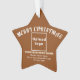 Feliz Natal! Encaminhamento acrílico com textos de saudação de Feliz Natal, logotipo de sua empresa, nome de empresa ou empresa, endereço e número de telefone. Designs são textos castanhos-claros e brancos sobre fundo castanho e em forma estelar. Ornamento para decorar a árvore de Natal em sua loja, compro ou escritório. Ornamento para receber visualmente seus clientes nesta temporada de feriados e anunciar sua empresa ou promover seu nome de marca. Personalize-o e use-o para criar reconhecimento de nome de marca. Verifique a aparência após carregar o logotipo e digitar textos. Se a aparência lhe agrada, você pode colocar seu pedido agora. Se você precisar redimensionar e mover o logotipo e os textos para o ajustado neste ornamento, mude a ferramenta design. Você também pode fazer outras alterações de acordo com sua preferência na ferramenta design, como alterar a cor do ornamento, a cor da fonte e o estilo da fonte. Feliz Natal! Desejo mais vendas para você neste feriado.