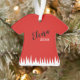 Nome e ano das garotas em um adorno de vestido branco e vermelho. Clique em Personalizar para atualizar o nome e o ano. Clique uma vez e ambos os lados mudam automaticamente.