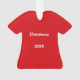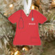 Um design gráfico vetorial de uma camisa uniforme esfregada pelo designer/artista Charmaine Paulson em um Enfeites de natal em forma de camisa. O ornamento tem o nome de texto (personalizável) na frente e Feliz Natal 20XX no verso.