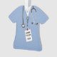 Enfermeira em formando de enfermagem guardam presente com esfregões hospitalares e estetoscópio. Para personalizar o texto de edição para adicionar o nome da enfermeira e o ano de graduação.