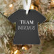Este Enfeites de natal engraçado "Team Introduvert" é o presente personalizado perfeito para o introvertido em sua vida. Como você sabe se você tem um introvertido em sua vida? Calma. Eles preferem silêncio a barulho, solidão a multidão, e pensando em falar. Este ornamento em forma de T-shirt contém as palavras "Team Introduvert" na frente (a única equipe que pretende juntar!) e espaço no verso para personalizar com um nome e número de "jogador" da sua escolha. Impressão branco sobre fundo preto. Celebre seu adorado introvertido com este adorável ornamento divertido, pensativo e humorístico. Um excelente e um presente de Natal original ou um gatilho de estoque.