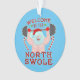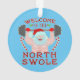 Não encontrará o Pai Natal a mexer com os biscoitos. Este ano, ele está levantando pesos em vez de óculos de leite. Este design de feriado engraçado mostra um Papai noel sem camisa levantando uma campainha em suas mãos luvas. Ele está rodeado de conchas e doces, e o texto diz: "Bem-vindo ao Swole Norte." Ninguém vai mexer com Papais noeis de novo.