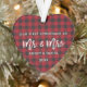 Escrita de Pincel Moderna, Xadrez de Buffalo Vermelho, Nosso Primeiro Natal como Sr. e Sra. Ornamento do Coração