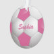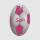 Ornamento Esfera de Futebol Personalizável, Rosa e Branco