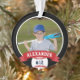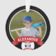 Comemore uma época incrível para o seu jogador de beisebol favorito com este ornamento personalizado legal em uma mira preta e vermelha. Personalize a frente com a foto, o nome e o número de camisa do jogador e adicione mais detalhes no verso, incluindo o nome da equipe ou da liga, a estação, a idade, a posição e o nome do treinador.