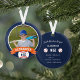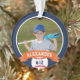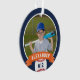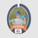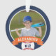 Comemore uma época incrível para seu jogador de beisebol favorito com este ornamento personalizado legal em uma marinho azul e laranja. Personalize a frente com a foto, o nome e o número de camisa do jogador e adicione mais detalhes no verso, incluindo o nome da equipe ou da liga, a estação, a idade, a posição e o nome do treinador.