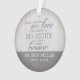 Recorde que seus amados o ano arredonda com este ornamento memorável personalizado da lembrança. O ornamento estimado da memória caracteriza uma foto na parte traseira. O ornamento lê "quando alguém que nós amamos se transforma uma memória que a memória se transforma um tesouro". Personalize com seus amados conhecidos e datas.
