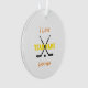 Pau de hóquei, Pu sobre fundo branco, padrão atrás. Costumo adorar HOCKEY em laranja, NOME em ouro amarelo. Fácil de personalizar texto, cores de texto, fontes para as suas próprias cores de equipe. Excelente para jogadores de hóquei, fãs, treinadores, entusiastas de hóquei de todas as idades. Moderno, Colorido, Divertido. Misturar e combinar coleções inteiras de hóquei / esportes / espírito de equipe por TMCdesigns.