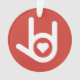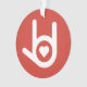 Forma branca de mão "Eu te amo" com dentro de coração contra fundo vermelho.