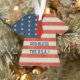Um Suéter De Natal Feio? Não muito, mas os Patriotas americanos de todas as formas, tamanhos, cores e persuasões adorarão ESTE ornamento especial em forma de T-Shirt para a bandeira e mensagem dos EUA ('Deus abençoe Os EUA') na frente e na mensagem personalizada atrás! Aguente na árvore de Natal, use para puxar fã ou luz, ou para onde quer que seus sumos criativos conduzam.