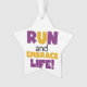 Se você gosta de correr, correr 5Ks, 10Ks, meia maratona, ou maratonas, você vai adorar este design de texto colorido em roxo e amarelo que lê Run and Embrace Life! Corra e Abraça Camisas de Vida, capuzes, ímãs, botões, cartões, adesivos, correntes-chave e muitos outros itens para corredores que adoram um design brilhante e colorido!