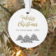 O moderno Ornamento Familiar Festivo Da Árvore De Natal Escreve Um Manejo De Família Minimalista. Três simples árvores de Natal de cinzas com bolas brancas. O texto Feliz Natal está em um roteiro de tendências. Personalize com o seu texto.