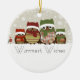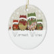 Seja chovendo, dormindo ou nevando, esta confortável família de corujas está vestida para o inverno com chapéus, cachecóis e blusões de estilo. Bonito padrão de flocos de neve e precioso passarinho com o chapéu fazem esta cena terminar. Na frente do ornamento lê-se "Desejos Mais Quentes". Licença estendida de imagem vetorial da família Owl em Fotolia.com - © Rouz - Fotolia.com.