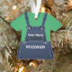 Uma bib gráfica, no geral, pela artista/designer Charmaine Paulson em um Enfeites de natal em forma de camisa. O ornamento tem o texto Wisconsin, e modelos para o seu nome, Feliz Natal, e ano. A cor de fundo também é personalizável.