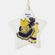 Grandes enfeites de natal cheerleading para o cheerleader que você conhece. A parte dianteira caracteriza um vestido do elogio, um pom-pom, e um megafone azuis e amarelos. Você pode personalizar o texto na parte superior. A parte traseira tem um espaço para uma fotografia feita sob encomenda de sua escolha.