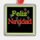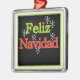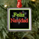 O ornamento de manutenção de feriados diz "Feliz Navidad" em texto verde e vermelho.