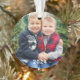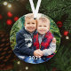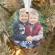 O design de ornamento de fotos para os feriados apresenta sua imagem favorita com o texto do ano em branco (pode ser personalizado) com o padrão de xadrez de búfalos vermelho e preto no verso. Personalize o texto personalizado "Feliz Natal" nas costas ou remova. Dica da foto: recorte a foto no formato quadrado antes de carregá-la no modelo de design. Crédito da fotografia: Duas Fotografias de Peixe www.twofishphoto.com