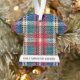 Padrão de tecido em branco azul vermelho verde vermelho com PRÊMIO SWEATER UGLY CHRISTMAS personalizado em ANO preto e personalizado em preto no verso. Excelente para QUALQUER concurso de festas de férias. Colorida, Divertida, Divertida. Misturar e combinar toda a coleção de Enfeites de natal por TMCdesigns.