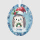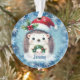 Aqui está um Enfeites de natal bonito para aquele neto ou neta especial! Um pequeno ouriço segura uma coroa e veste um Papai Noel vermelho e branco que decorava com sombra e bagas. A imagem é colocada sobre um fundo azul com flocos de neve brancos. O nome do seu filho está em uma faixa na parte inferior. A parte de trás do ornamento está em azul com o texto personalizado em branco. É personalizado, e facilmente adaptado para um presente para e de qualquer um; basta mudar o texto.