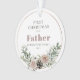First Christmas as a Father Personalized with Name and Year Round Acrylic Keepsake Ornament Gift... A beautiful bouquet of pink roses, pine cones, and Christmas botanicals decorates the rose gold metallic circle framing the text of your holiday themed ornament. The example wording on this keepsake acrylic ornament reads "First Christmas as a Father" in elegant serif typography followed by the new dad's name and the current year. All text can be easily revised on the personalization template.