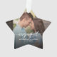 Ornamento First Christmas Engaged White overlay Custom Photo