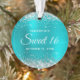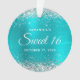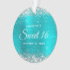 Crie seu próprio ornamento acrílico em círculo doce 16 para sua filha. Você pode personalizar o texto da caligrafia "Sweet 16" ou o estilo da fonte. O fundo da arte digital apresenta uma falsa cinza de silva brilhando e uma brilhante folha azul-turquesa de satin ombre. Na parte de trás, você pode adicionar uma foto de família se quiser. Enfeite de 16 anos para ela.
