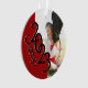 Ornamento de fotos de graduação em verso vermelho para formandos da classe de 2023 com um lugar para até duas fotos ou apenas uma foto e texto no outro lado.