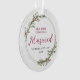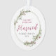 Celebre seu primeiro Natal casado com este elegante e mínimo ornamento de fotos de coroa. A coroa tem bagas vermelhas delicadas com sotaque foliar verde. Fácil de personalizar com seus nomes e ano na frente e sua foto na parte de trás.