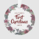 Ornamento Foto de Bebê Primeiro Natal Floral Festa