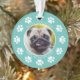 Celebre seu amigo peludo nesta temporada de festas com este adorável ornamento personalizado de animais de estimação. Apresentando uma mensagem divertida de "Feliz Natal" em branco contra um fundo lacrimogêneo, impressões de pata e um espaço para a foto do seu amado animal de estimação, este ornamento é uma maneira emocionante de incluí-los na sua alegria de férias.