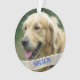 Animais de estimação, foto de cão e Enfeites de natal de nome. O ornamento em árvore redonda acrílico com o nome modelo na frente e mais texto personalizado no verso, que é azul com texto branco.