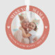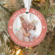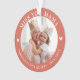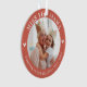Adorno de lembrança de perda moderno e elegante, sua foto favorita em moldura redonda, letra circular, corações decorativos sobrepostos em fundo ferrugem.