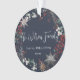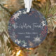 Ornamentos de fotos de Natal personalizados, com vegetação invernal e morangos em coroa, com nomes personalizados, ano e foto.