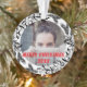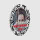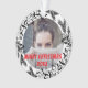 Ornamento Personalizado de Natal Preto e Feliz. Terra Negra de Natal. Design simples. Fundo branco. Texto e foto personalizados. Coloque sua própria foto aqui. Compre como presente de Natal.
