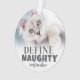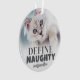 Enfeite de Gato Personalizado "Definir Travesso". Adicione um toque de humor à sua decoração de Natal com este enfeite de gato engraçado, perfeito para quem tem um gatinho travesso ou uma gatinha atrevida. A frente apresenta o texto divertido "Definir Travesso" junto com o nome do seu gato, capturando a personalidade maliciosa do seu felino. Há também espaço para uma foto do seu gato para adicionar um toque pessoal. A parte de trás apresenta um design de pegada de pata com um recorte em forma de coração no centro, tornando-o ainda mais especial. Tanto a cor da fonte quanto a pegada de pata podem ser personalizadas para se adequar ao seu estilo. Este enfeite humorístico é perfeito para os amantes de gatos, tornando-o um presente divertido para o Natal, aniversários ou apenas por diversão. Uma ótima maneira de mostrar o