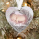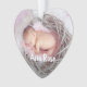 Personalize este adorável ornamento em forma de coração com duas fotos preciosas para comemorar o nascimento do seu bebê ou o primeiro Natal. Suas legendas personalizadas aparecem na frente e no verso em tipografia de pincel com letra branca.
