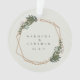 Você se casou este ano? Adicione uma memória à sua árvore de Natal com este moderno ornamento de guardas de casamento com uma estrutura geométrica de ouro cercada por verde e flores brancas. Dentro do quadro são seus nomes e data do casamento. O fundo tem sua foto favorita. Este ornamento também faz um presente de excelente para um casal recém-casado para o seu primeiro Natal. Quadro cortesia de:<a href="http://www.freepik.com">Concebida por Freepik</a>
