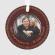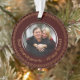 Na moda, moderno Enfeites de natal vermelho-escuro BEST GRANDPARENTS, mostrando uma foto personalizável no centro - carregue sua própria foto (quadrada) - e ao redor da borda está um texto personalizável que lê MELHOR AVÓ - TODO ANO RONDA, que você pode substituir por sua própria mensagem, por exemplo. PRIMEIRO NATAL. As bordas são decoradas com traços de bolhas dourados falsos. A design é repetida no reverso. Disponível em outras cores.