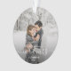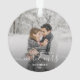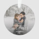 Comemore o primeiro Natal do seu casamento com este belo ornamento moderno do keepsasasaame. O texto branco lê "Nosso primeiro Natal como Sr. & Sra.", com as palavras "Sr. & Sra." em um roteiro elegante, com flores antes e depois. Substitua a imagem de exemplo por sua foto favorita e adicione seu sobrenome e o ano. Um filtro de gradiente escuro ajuda a tornar o texto pop.