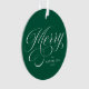 Enfeites de natal elegante com "Feliz" na frente, em uma cobertura de script de caligrafia branca com fundo verde. Personalize a frente do ornamento, acrescentando o seu nome e o ano em caracteres brancos. A parte de trás do ornamento mostra sua foto.
