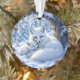 Wishing someone a Merry Christmas with this sweet winter foxes themed personalized ornament. Add your own message on the back. Front has a sweet illustration of two white foxes, a mama and baby cuddling under a tree in the snow.