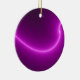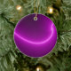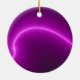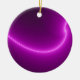 Este ornamento apresenta uma imagem fractal que se parece com um arco de eletricidade roxa brilhante. O fundo preto é iluminado pela intensidade da curva roxa. A imagem está na frente e atrás do ornamento.