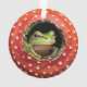 A charming green frog peeking out from inside a red toadstool creates a whimsical woodland holiday vibe. This cozy, nature-themed artwork blends Christmas charm with cottagecore fantasy, perfect for nature lovers, frog fans, and anyone who enjoys cute, magical forest designs during the holiday season. A warm and playful piece that stands out on any tree.