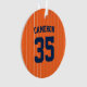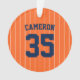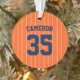 Baseball jersey stripes style ornament with colors that are fully customizable on the front and you can add your photo on the back. On the front, to change the background color, click customize and change the background color and to change the stripes color, click customize, select "ThinStripes1" layer and change the fill color. Perfect for the baseball fan this holiday season.