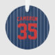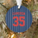 Baseball jersey stripes style ornament with colors that are fully customizable on the front and you can add your photo on the back. On the front, to change the background color, click customize and change the background color and to change the stripes color, click customize, select "ThinStripes1" layer and change the fill color. Perfect for the baseball fan this holiday season.