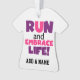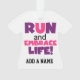 Se você ama funcionar, funcionar 5Ks, 10Ks, meias maratonas, ou maratonas, você amará este design de texto colorido em roxo e em cor-de-rosa que lê a vida do funcionamento e do abraço! Funcione e abrace t-shirt da vida, canecas, bolsas, cartões, etiquetas, as correntes chaves, os mousepads, as capas de iphone, os ímãs, e o muito mais!